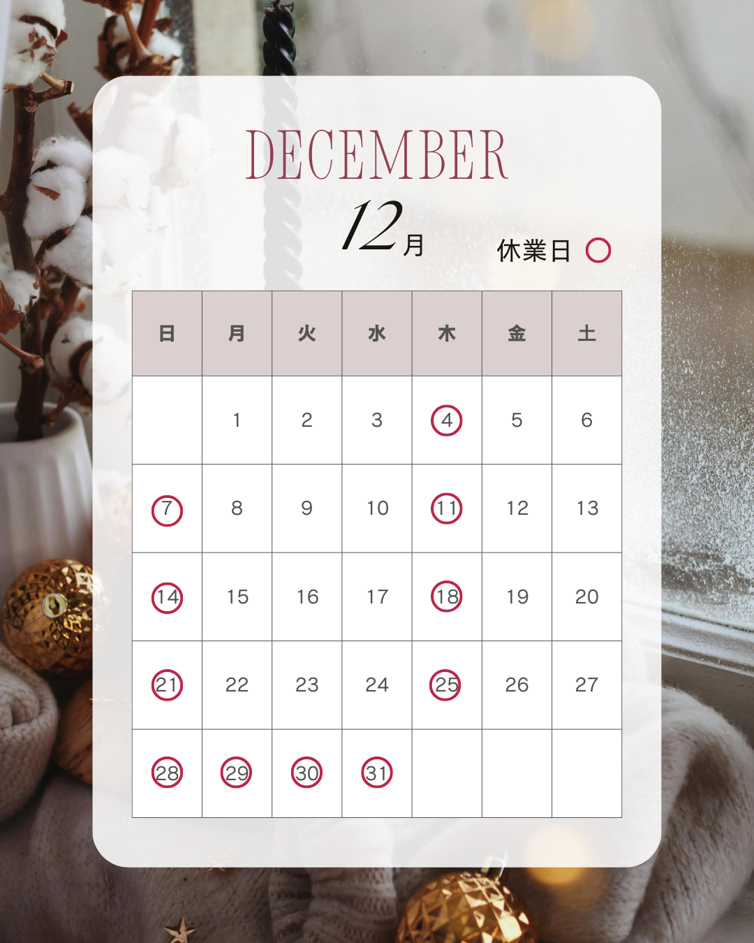 月毎の休診日